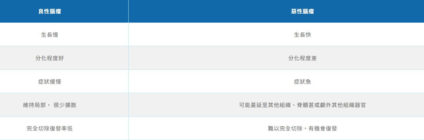 - 生長特徵:生長較緩慢,腦部有時間適應它的存在,所以當有症狀時,通常已經變得很大。